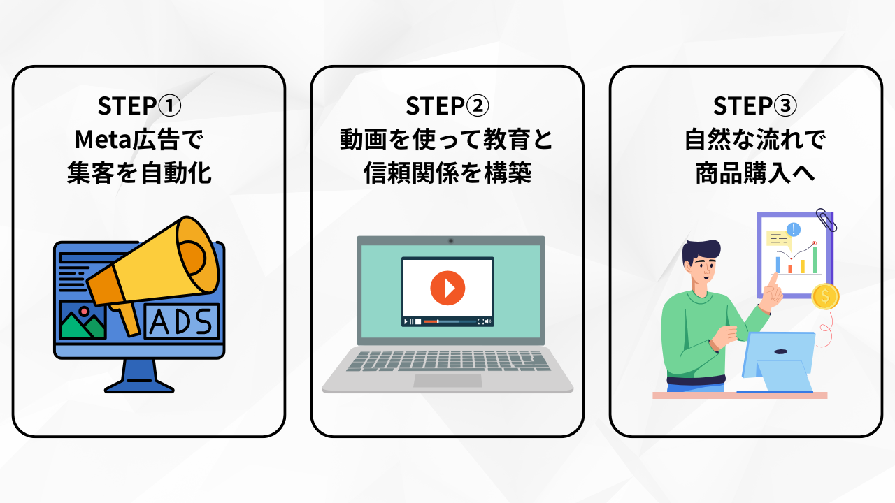 しかし、このファネルを活用すれば、そのすべてをたった1本の動画に集約し、自動化できます。